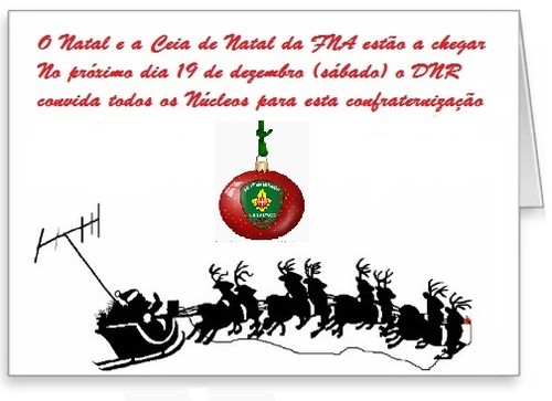 O Departamento Nacional de Radioescutismo realiza mais uma Ceia de Natal. Tal como no passado vamos tentar reunir o máximo de associados da FNA.